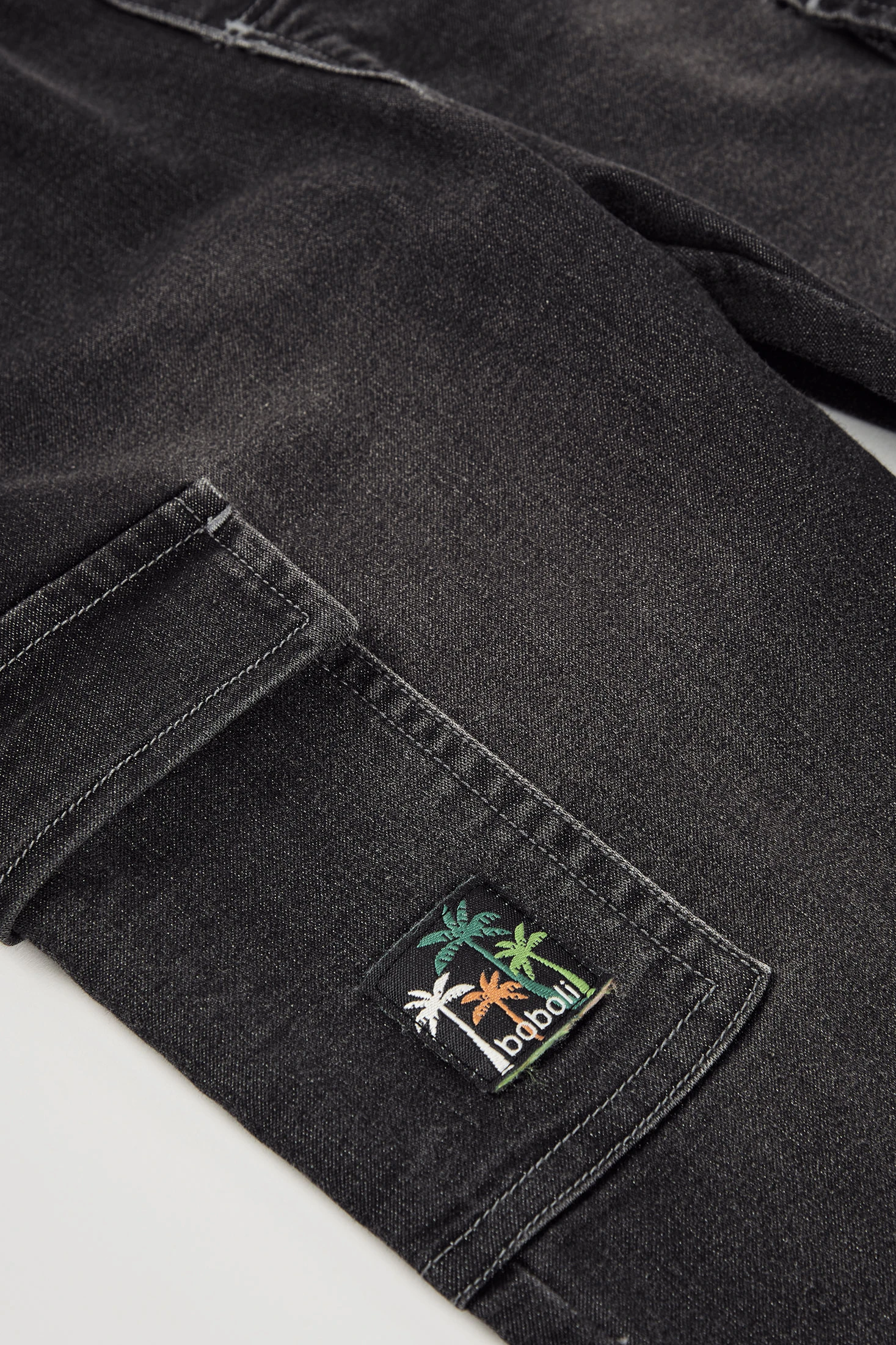 Pantalon en denim gris pour enfant, idéal pour le quotidien. Confectionné dans un tissu denim résistant, il offre confort et style. Doté d'une taille élastique ajustable et de poches cargo fonctionnelles, parfait pour les aventures. Présente une petite broderie de palmiers comme détail décoratif. Disponible en tailles allant de 12 mois à 10 ans, s'adaptant à la croissance de votre enfant. Sa couleur gris foncé le rend polyvalent pour se marier avec différents t-shirts ou vestes, idéal pour un look décontracté et moderne.