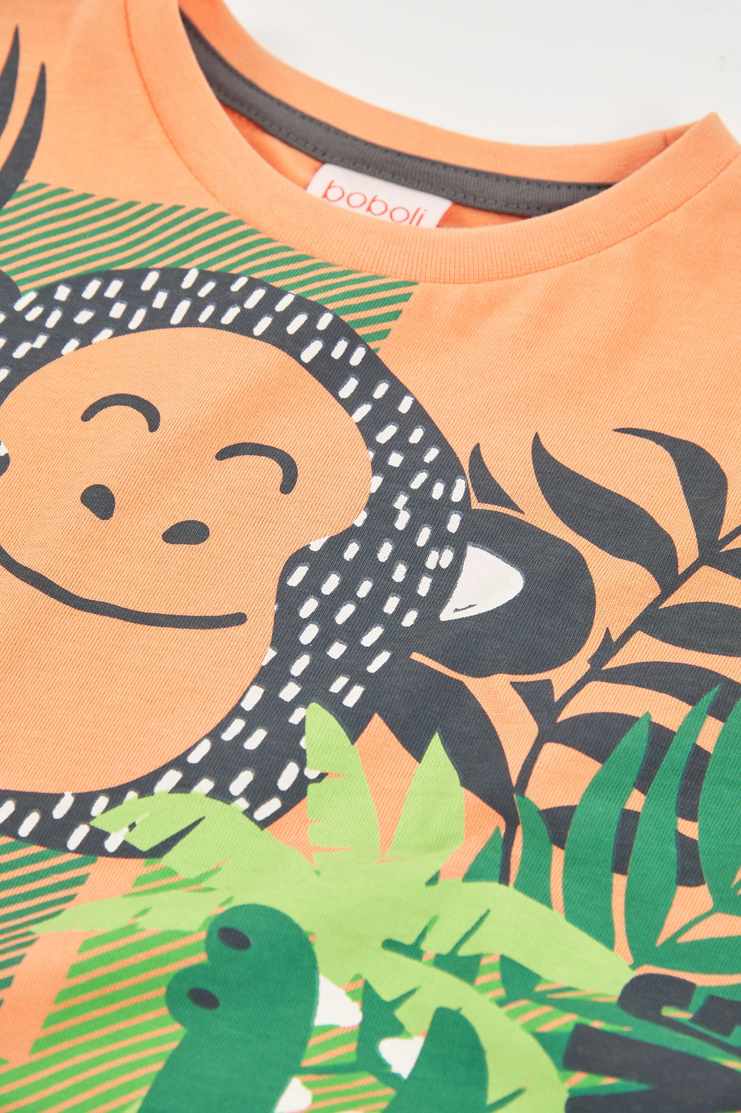 T-shirt en maille de couleur orange pour garçon, parfaite pour la saison printemps-été. Fabriquée en coton, elle offre confort et douceur au toucher. Elle présente un imprimé amusant d'animaux et de végétation, idéal pour les petits explorateurs. Disponible en tailles de 12 mois à 10 ans, elle s'adapte à la croissance de l'enfant. Son design à manches courtes et col rond la rend idéale pour être associée à des jeans ou des shorts. C'est un vêtement polyvalent qui ajoute une touche joyeuse à n'importe quelle tenue enfantine.