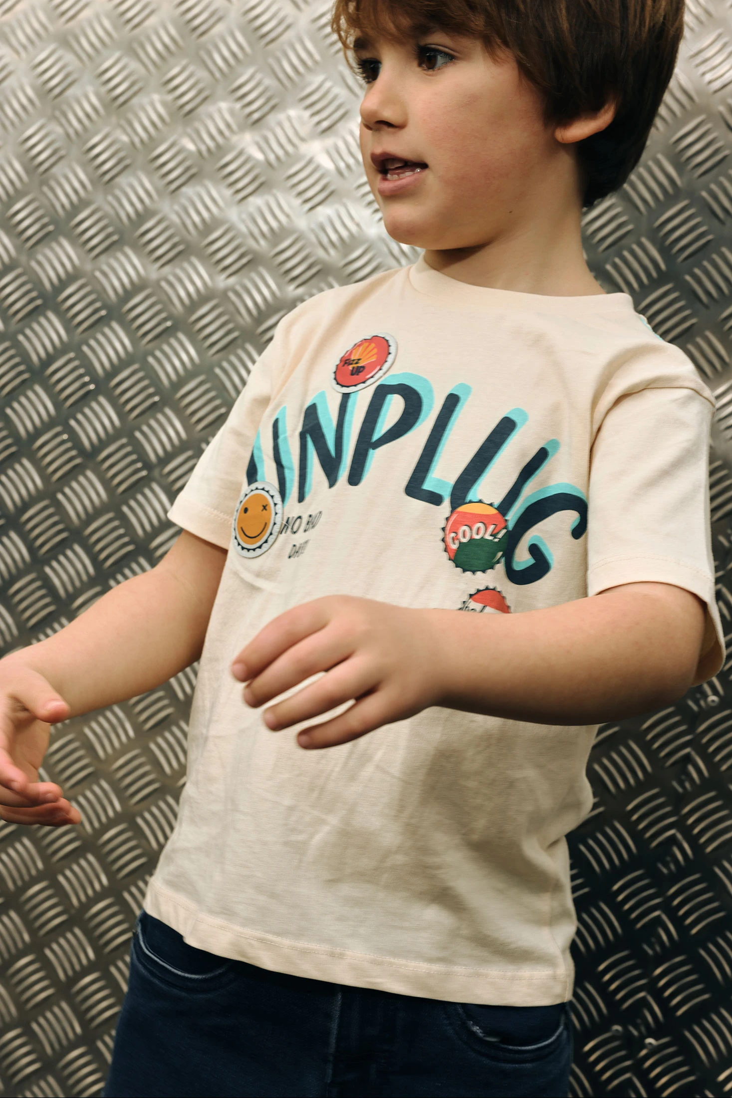 T-shirt pour garçon confectionnée en doux coton brut, idéale pour le quotidien. Son design présente des dessins et des mots colorés qui ajoutent une touche amusante. Les tailles vont de 12 mois à 10 ans, permettant de s'adapter à la croissance de l'enfant. Avec un col rond et des manches courtes, elle est parfaite pour les saisons chaudes. Sa polyvalence la rend facile à assortir avec un jean ou un short, offrant confort et style décontracté en toute occasion.