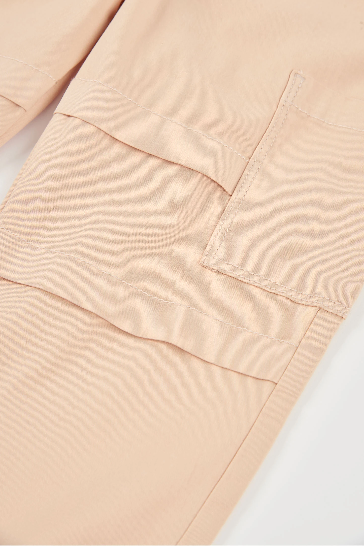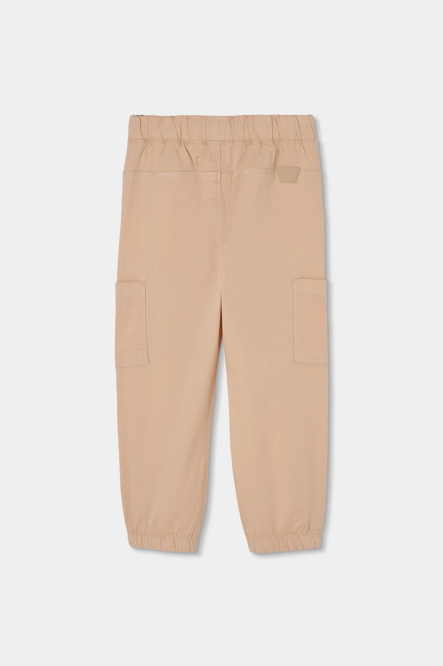 Pantalon élastique en coton pour enfant, idéal pour le quotidien. Sa couleur beige neutre le rend facilement combinable avec d'autres vêtements. Il présente un design fonctionnel incluant des poches latérales et un ajustement confortable à la taille avec un cordon. Parfait pour les âges de 12 mois à 10 ans, il offre une option pratique et polyvalente. Les finitions élastiques aux chevilles assurent un bon ajustement. Son matériau doux et résistant est idéal pour un usage actif, offrant liberté de mouvement et confort en toute occasion.