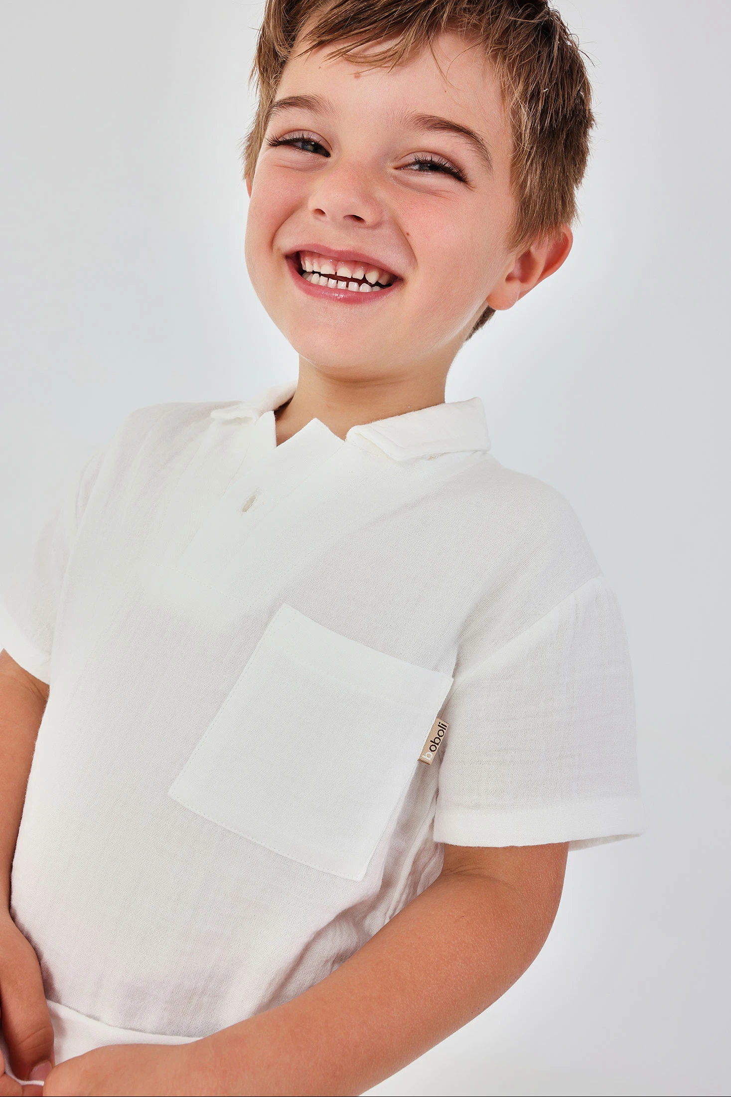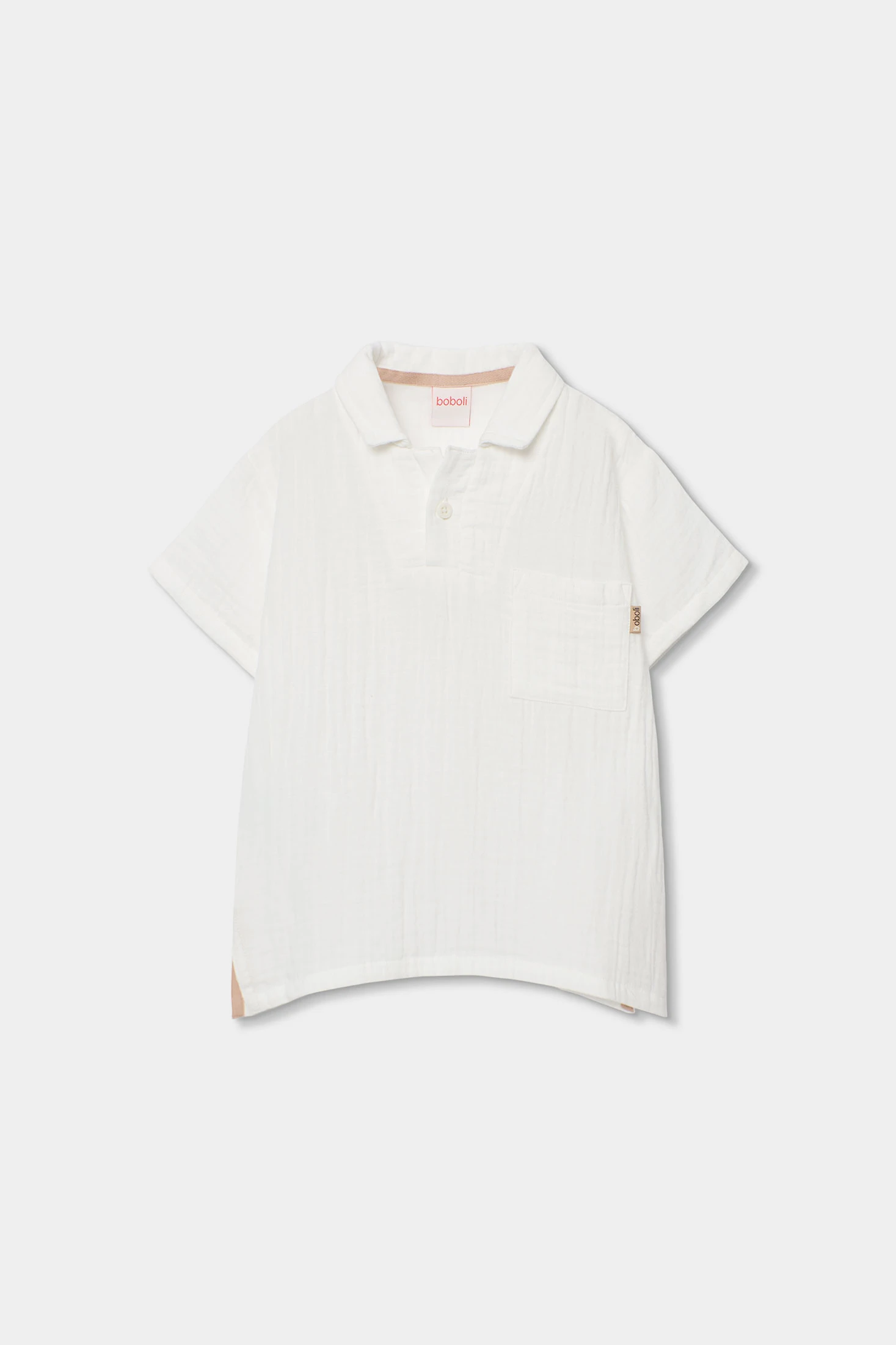 Polo en mousseline de coton blanc cassé pour enfant, parfait pour les climats chauds. Avec un design simple et élégant, il dispose d'un col classique et de manches courtes offrant confort et fraîcheur. Son tissu léger et respirant est idéal pour garder les petits au frais. Disponible en tailles de 12 mois à 10 ans, ce polo est polyvalent et facile à assortir avec différents styles de vêtements pour un look épuré et décontracté. Une option pratique et stylée pour le quotidien.