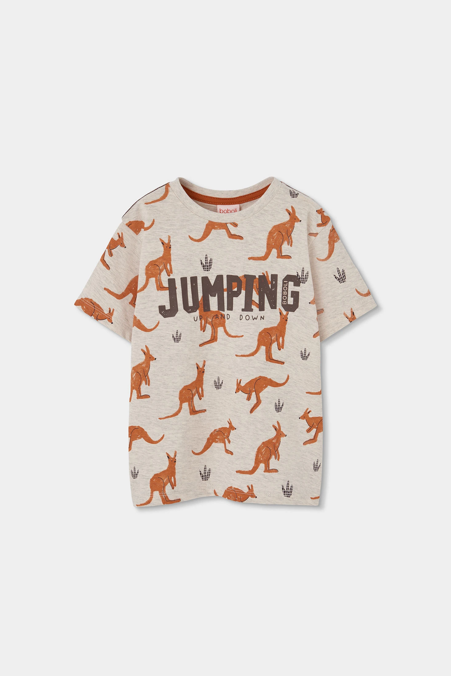 T-shirt en coton imprimé pour garçon, idéale à porter tout l'été. Son design présente un imprimé amusant de kangourous et de traces, avec un texte en grand qui ajoute du style. La couleur de base crème offre une apparence moderne et décontractée. Disponible en tailles de 12 mois à 10 ans, elle s'adapte à la croissance de l'enfant. Le tissu en coton assure confort et douceur, parfait pour un usage quotidien. Associez-la avec un jean ou un short pour un look frais et fonctionnel en toute occasion.
