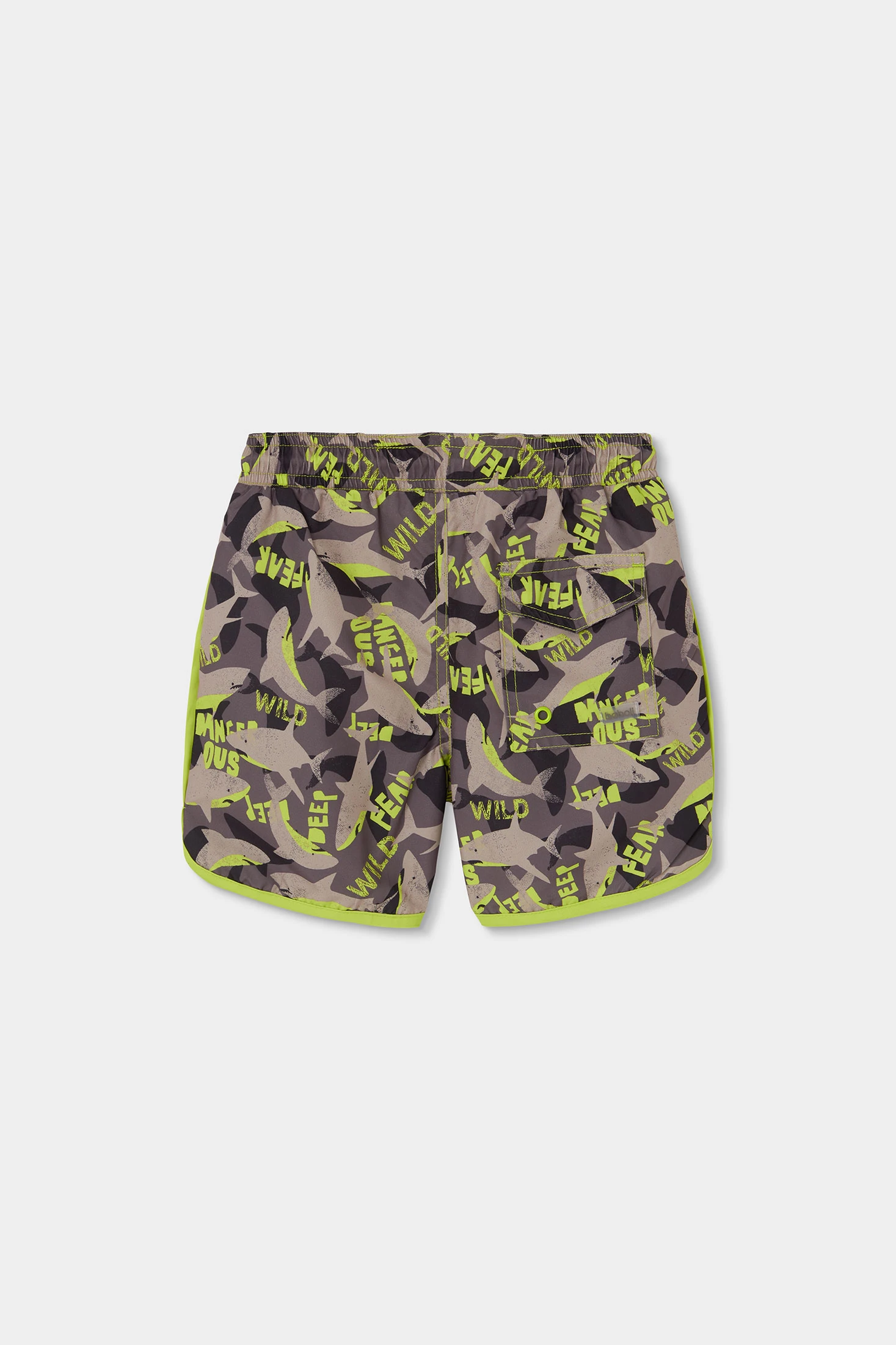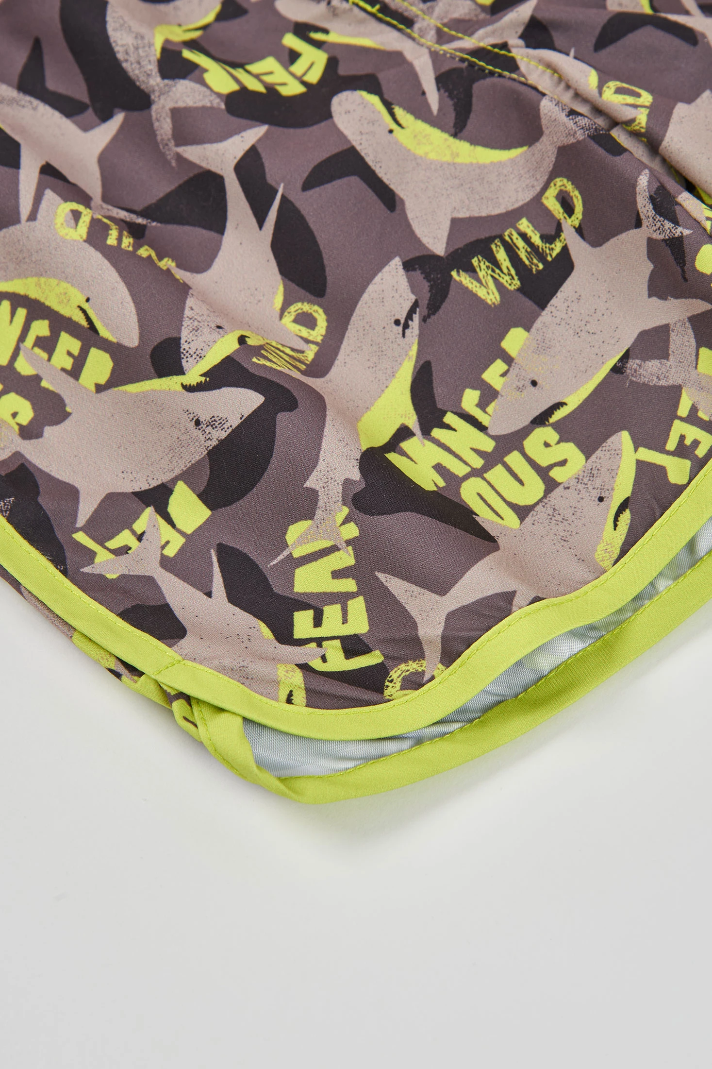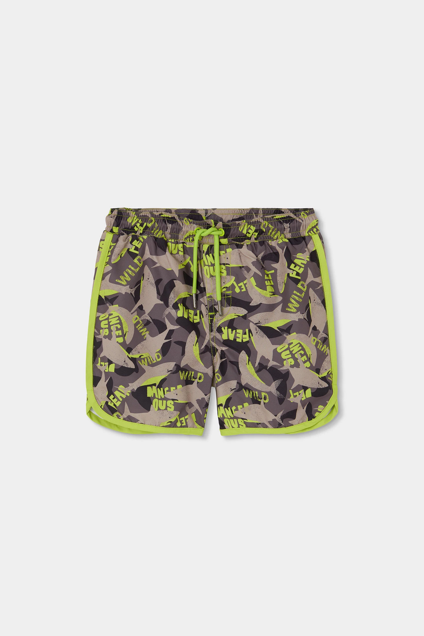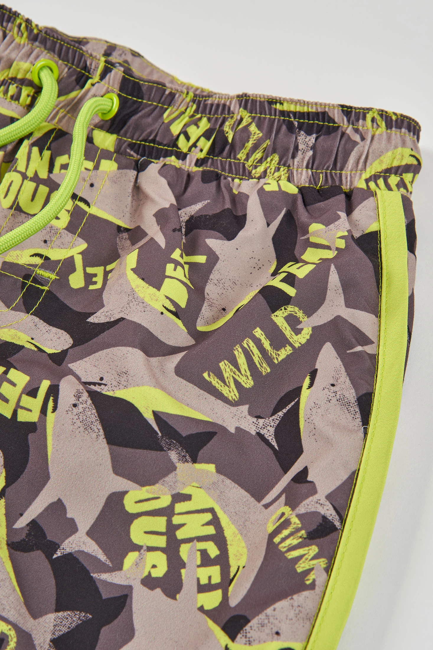 Maillot de bain en tissu recyclé idéal pour les enfants, dans une couleur marron attrayante avec des détails en vert fluorescent. Il présente des motifs d'animaux pas tout à fait clairs et des mots qui ajoutent une touche amusante. Son design est confortable et fonctionnel, parfait pour profiter de l'eau. Il est disponible en tailles de 2 ans à 14 ans. Le matériau est durable et adapté pour la piscine ou la plage, offrant à la fois style et conscience environnementale.