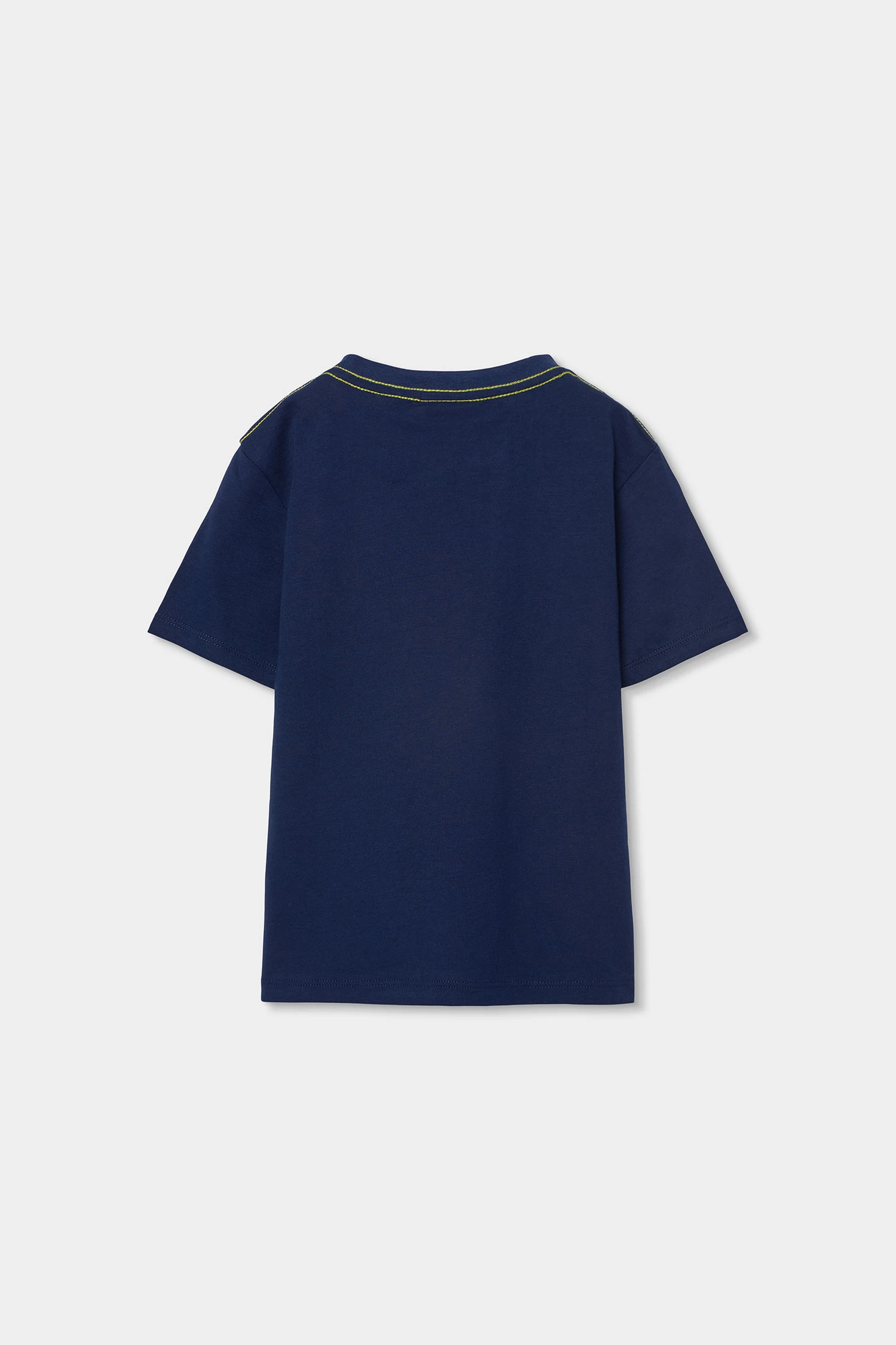 T-shirt en coton tricoté pour garçon avec un design d'animal amusant sur la partie avant, de couleur bleu marine, offrant un style polyvalent et moderne pour la saison. Le matériau est doux et confortable, idéal pour un usage quotidien. Disponible en tailles allant de 12 mois à 14 ans, assurant un ajustement parfait au fur et à mesure de sa croissance. Avec un col rond, ce t-shirt se combine facilement avec des pantalons ou des shorts, offrant une option fonctionnelle et à la mode pour toute occasion.