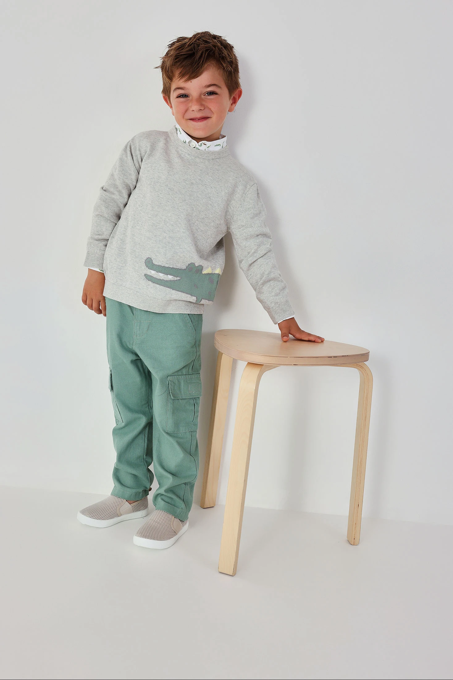 Pull enfant coton gris crocodile