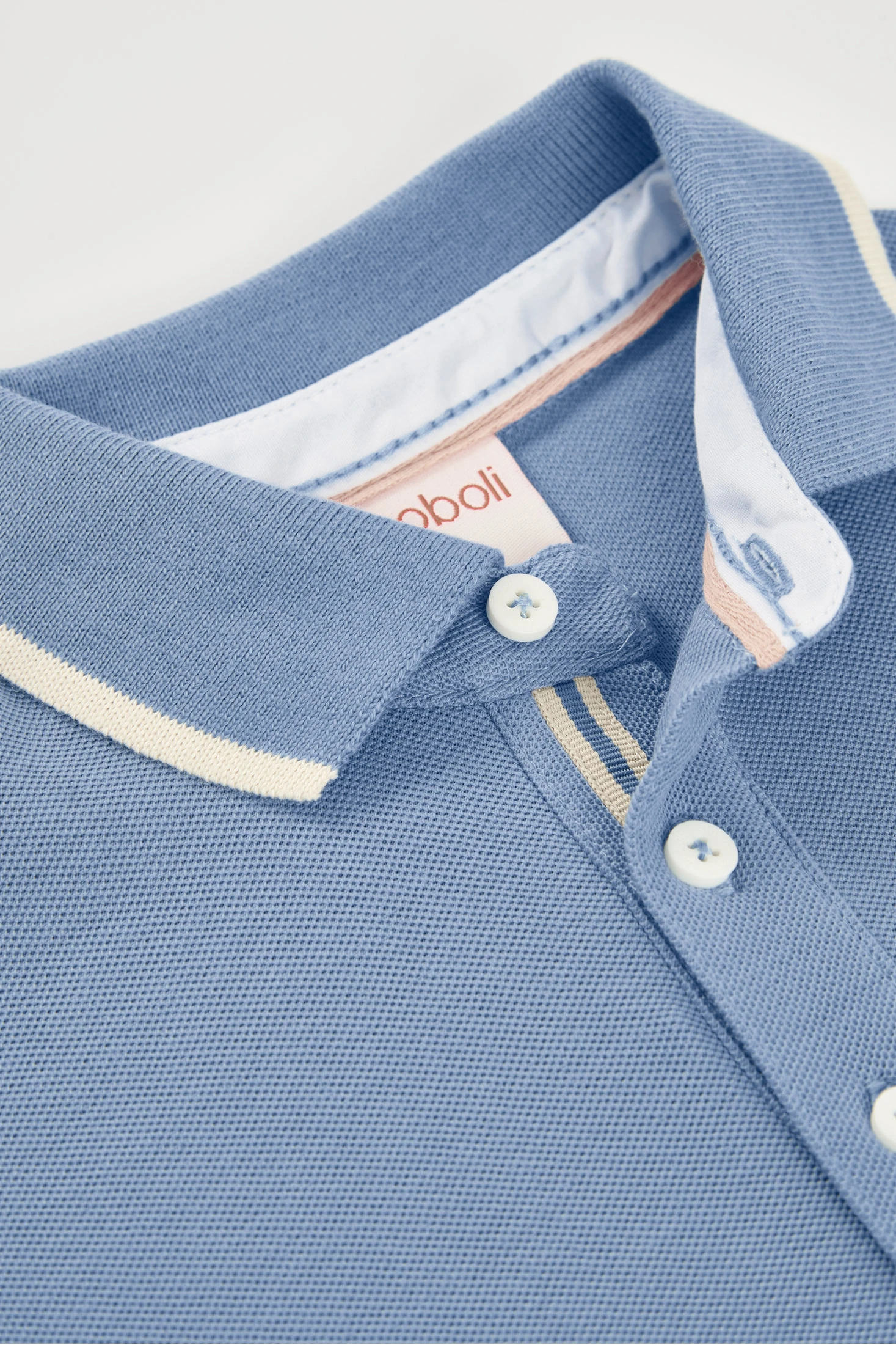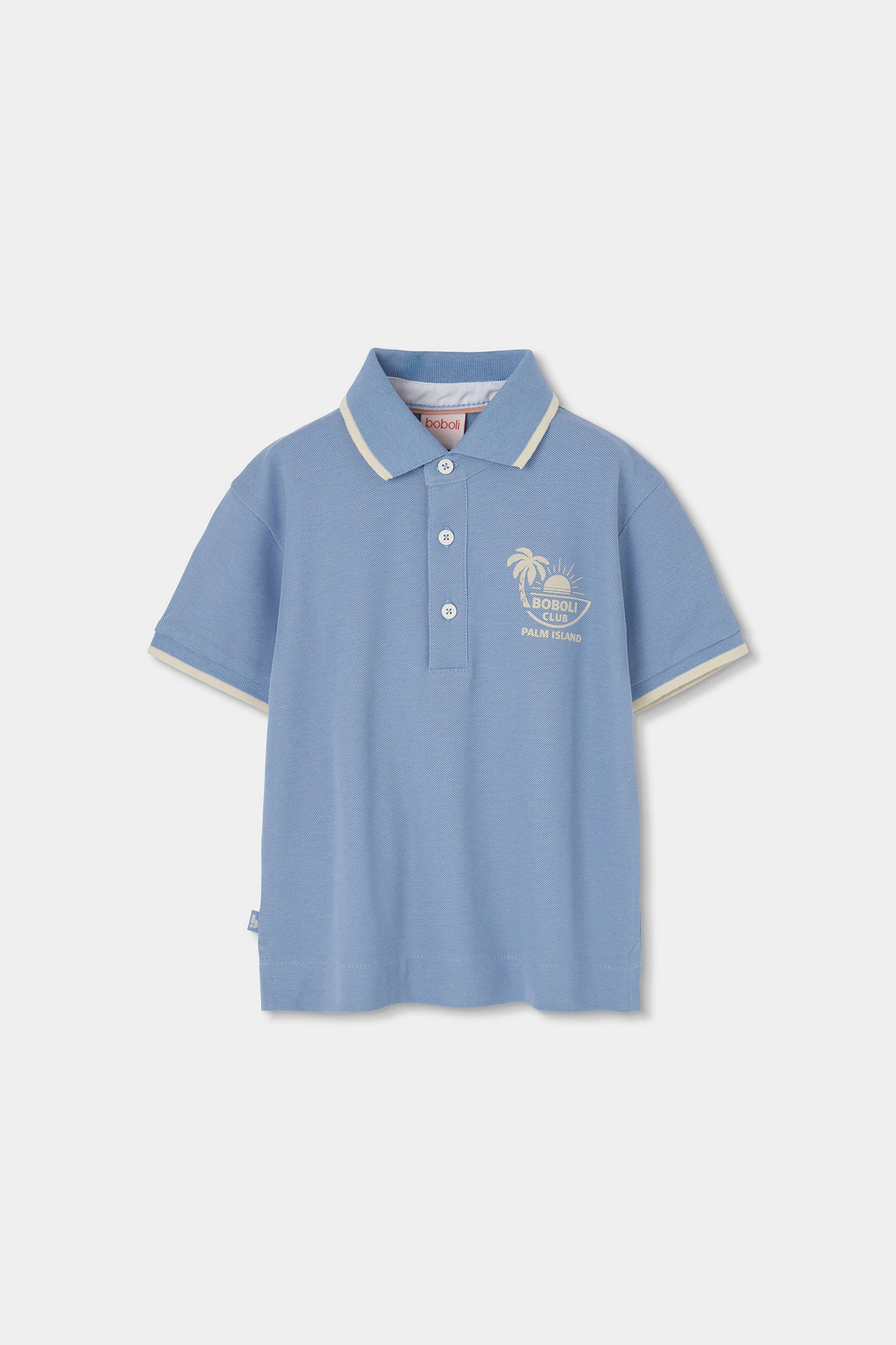 Polo en piqué bleu et beige, parfait pour les plus petits, offrant fraîcheur et confort pour l'été. Le design présente des détails subtils et une couleur élégante qui permet de les associer facilement avec d'autres vêtements. Disponibles en tailles pour bébés et enfants de 12 mois à 10 ans. Idéal pour un look décontracté et confortable, gardant votre enfant frais et stylé pendant les journées les plus chaudes.