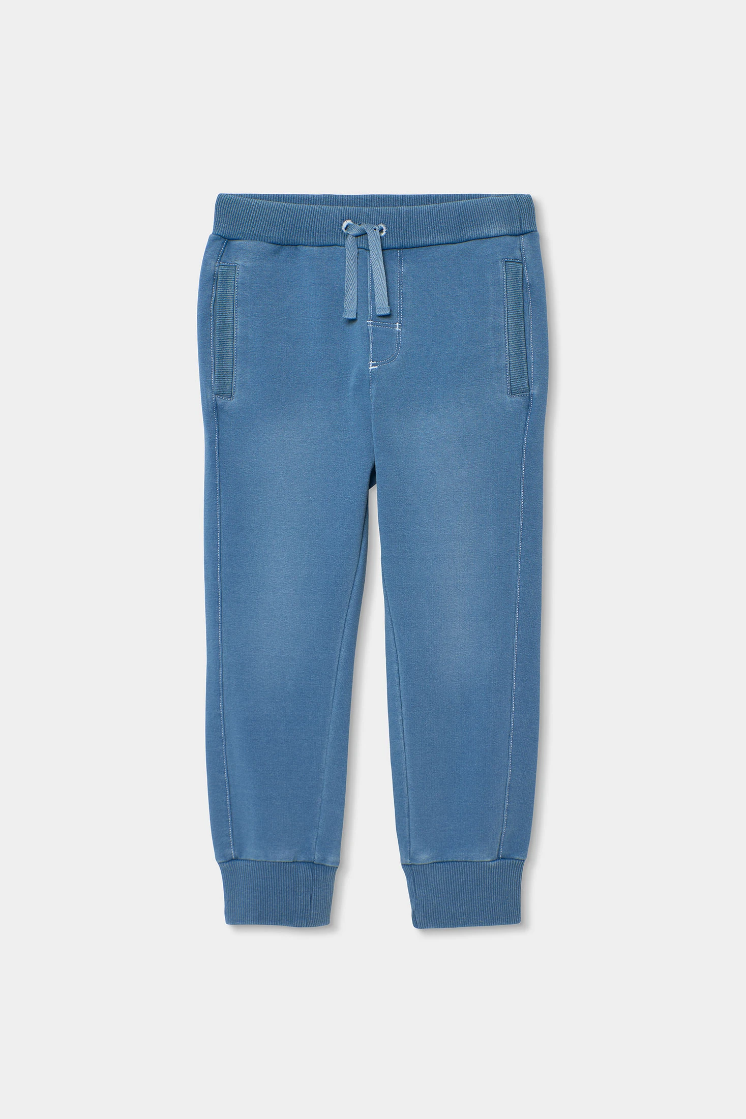 Pantalon en molleton denim pour garçon de couleur bleach, avec une finition d’inspiration denim et un toucher doux. Conçu pour offrir du confort au quotidien, son tissu élastique facilite le mouvement et assure un ajustement confortable. Il est confectionné dans un mélange de 78% coton, 15% polyester et 7% élasthanne, alliant résistance, flexibilité et confort. Une pièce pratique et facile à assortir, idéale pour un usage quotidien.