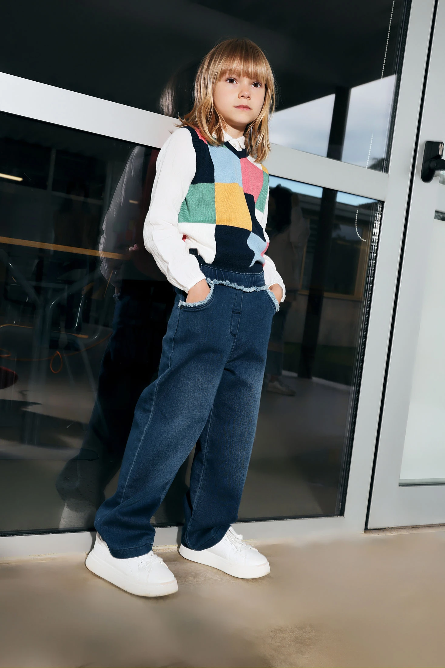 Jean bleu pour fille, conçu pour offrir confort et polyvalence tout au long de l'année. Fabriqué avec un tissu doux et extensible, il permet une liberté de mouvement, idéal pour le jeu et les activités quotidiennes. Disponible en tailles de 12 mois à 10 ans, il garantit un ajustement parfait à la silhouette de votre fille. La couleur bleue classique facilite sa combinaison avec des t-shirts colorés ou des pulls imprimés, offrant un look charmant et fonctionnel pour toute occasion.