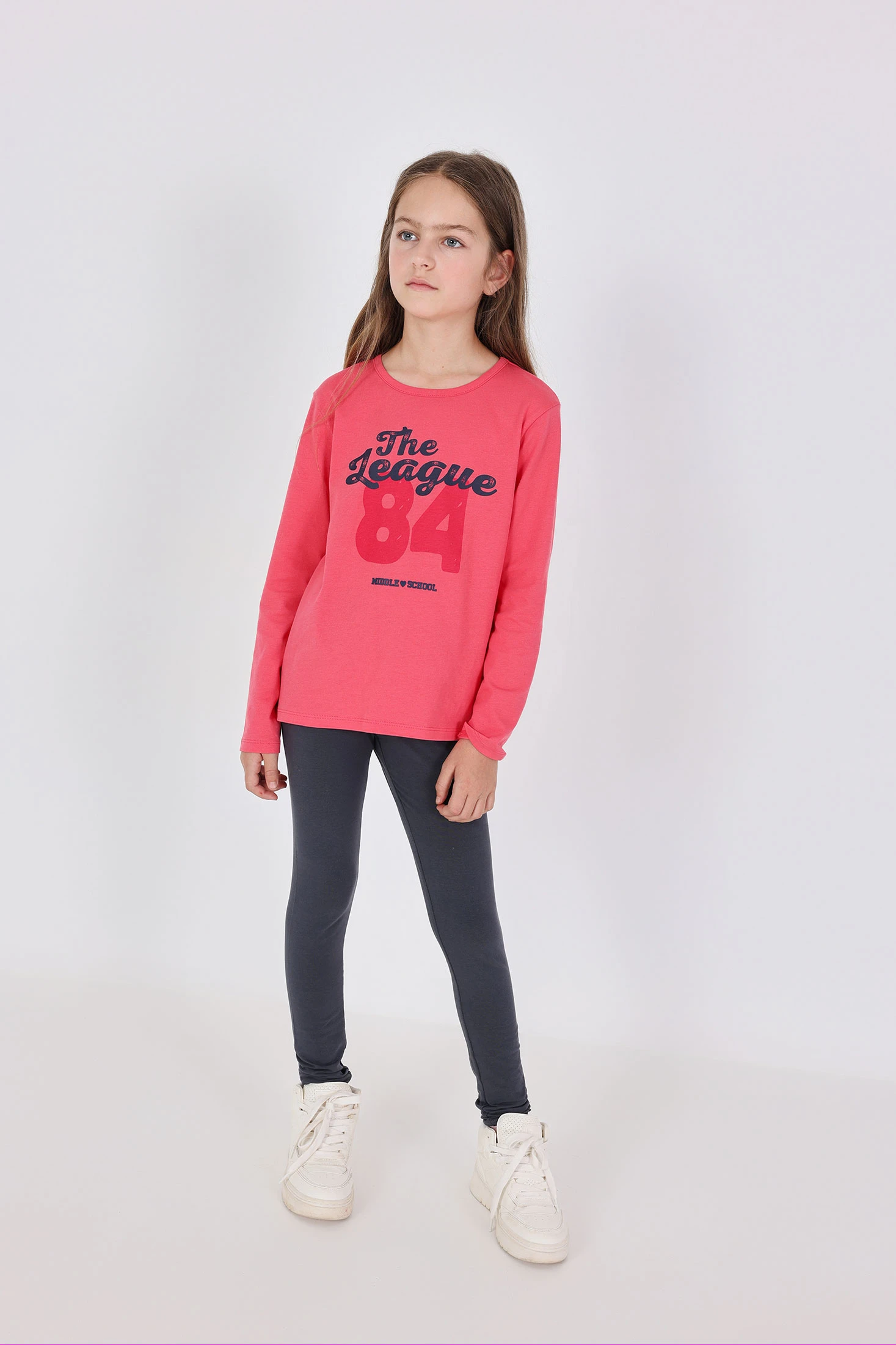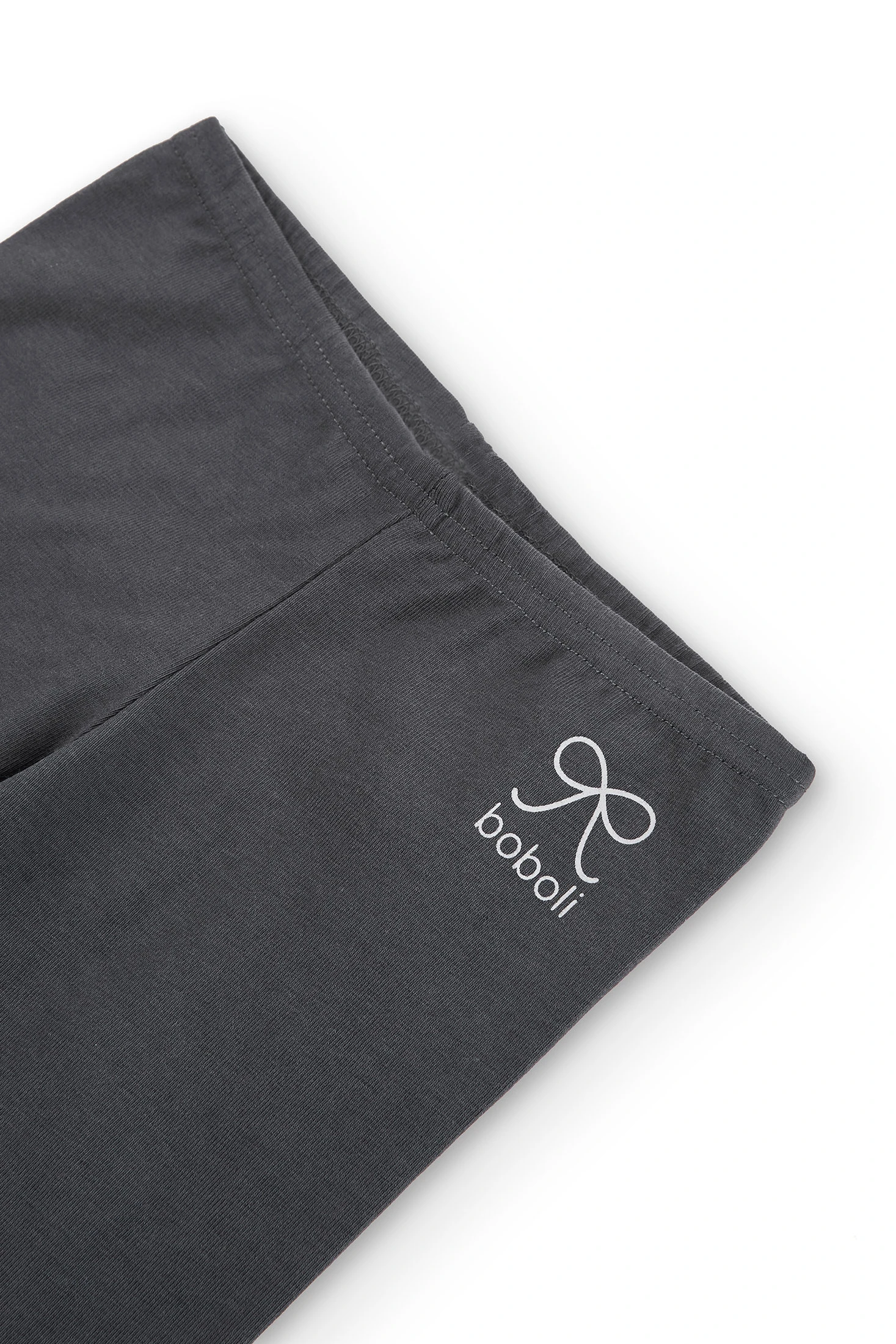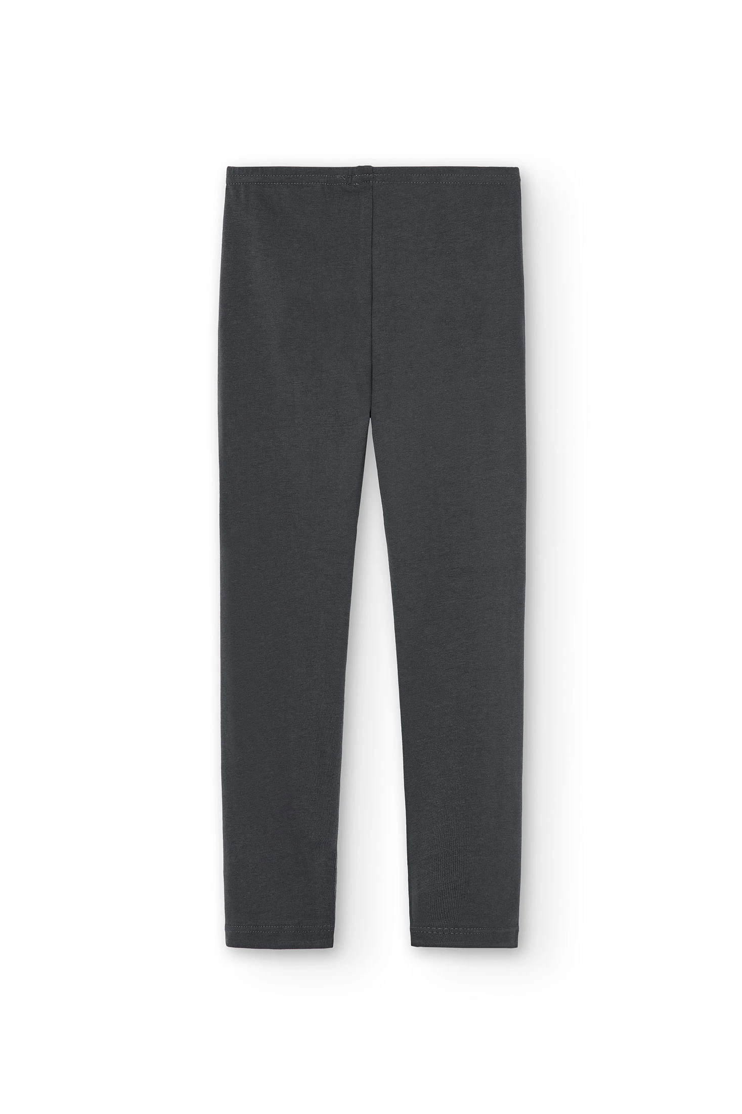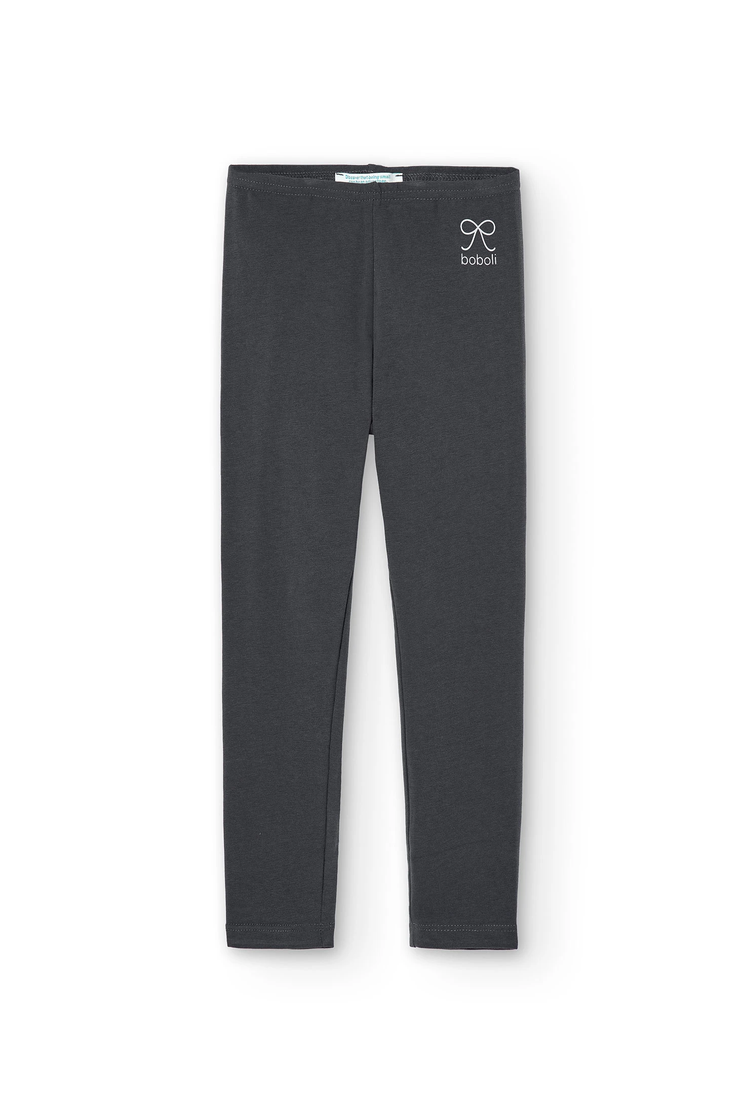 Leggings gris en tricot élastique pour fille avec fermeture élastique. La décoration est un petit imprimé avec le détail de la marque. Disponible de la taille 4 ans à 16 ans.